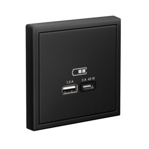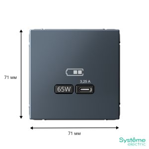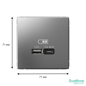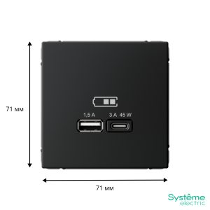 Розетка ATLASDESIGN двойная с заземлением 16А в сборе карбон