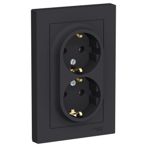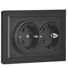 ATLASDESIGN РОЗЕТКА двойная без заземления,16А, в сборе, БАЗАЛЬТ