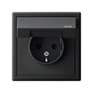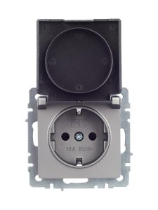 ARTGALLERY розетка с заземл. со шт. с крышк, 16А, IP44, механизм, карбон