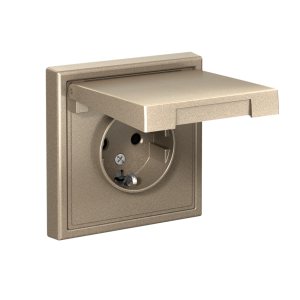 Розетка ATLASDESIGN с заземлением со шторками 16А в сборе шампань