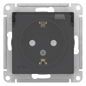 ATLASDESIGN РОЗЕТКА двойная с заземлением, 16А, в сборе, БАЗАЛЬТ