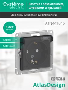 Розетка ATLASDESIGN двойная без заземления 16А в сборе карбон