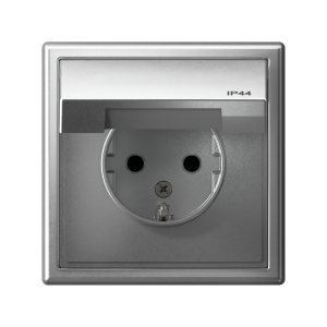 ARTGALLERY розетка с заземл. со шт. с крышк, 16А, IP44, механизм, алюминий