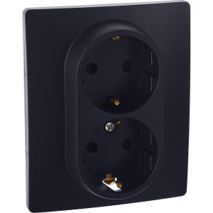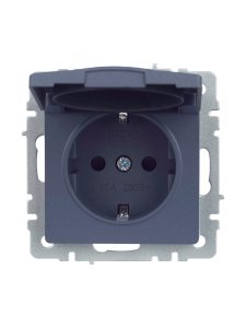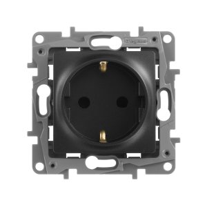 GLOSSA Розетка с заземлением со шторками антрацит в рамку