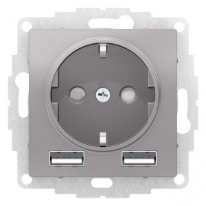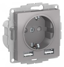 РОЗЕТКА ATLASDESIGN 16А c 2 USB A+A, 5В/2,4А, 2х5В/1,2А, механизм, АЛЮМИНИЙ
