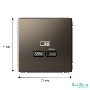 ARTGALLERY USB розетка тип-С 65Вт высокоскор.заряд. QC, PD, механизм, мокко