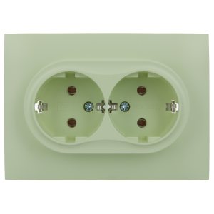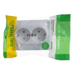 GLOSSA Розетка двойная с заземлением со шторками в сборе белая