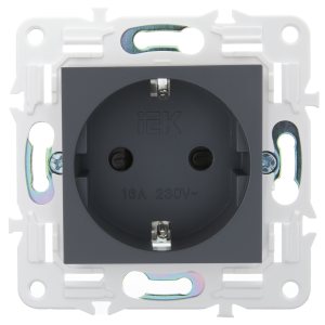 Connect Розетка с заземлением 16А 250В 45х45мм винтовые клеммы SC графит