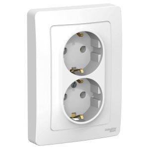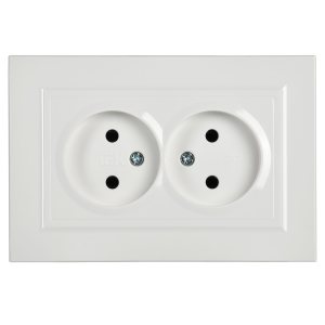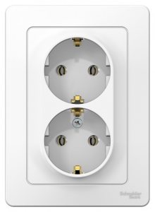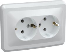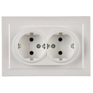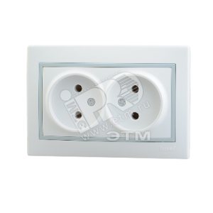 Розетка двойная скрытая с заземлением белая