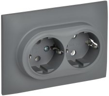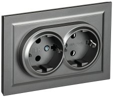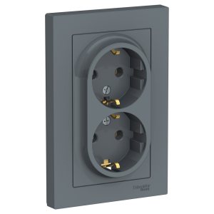 Розетка ATLASDESIGN двойная с заземлением 16А в сборе грифель
