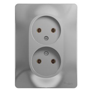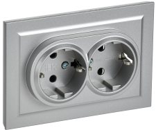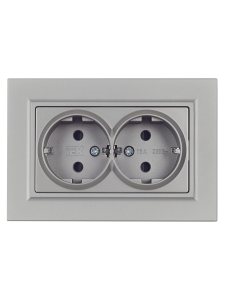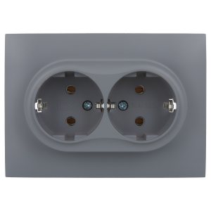 MIRA Розетка двойная без заземления металлик серая