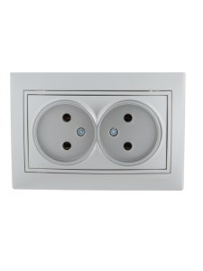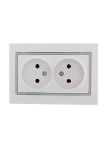 MIRA Розетка двойная без заземления белая с серой вставкой