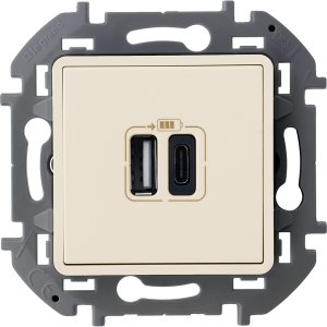 Зарядное устройство USB А+С 3000мА 5Вслоновая кость INSPIRIA