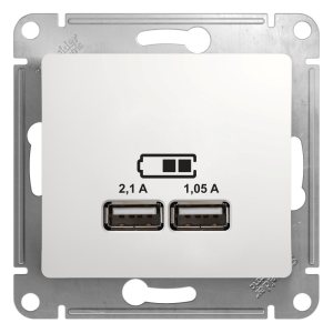 Розетка GLOSSA USB 5В/2100мА 2х5В/1050мА механизм белый