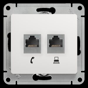 GLOSSA Розетка телефон/компьютер RJ11+RJ45 категория 5е в рамку белая