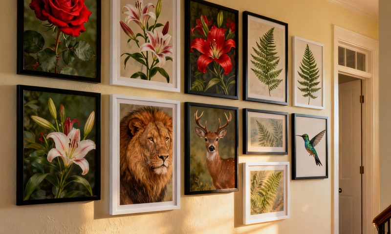 Создайте галерейную стену: Объедините картины и постеры разных размеров, стилей и тематик в единую композицию.