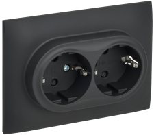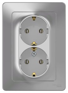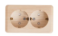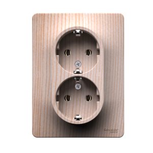 GLOSSA розетка двойная с заземлением, 16А, в сборе, сосна