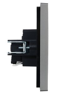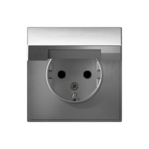 Розетка ATLASDESIGN с заземлением со шторками 16А в сборе сталь