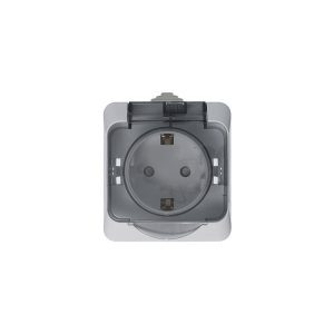 ЭТЮД Розетка наружная с заземлением со шторками IP44 серая