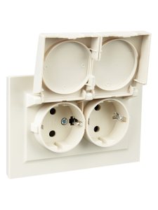 Розетка двойная скрытая с заземлением со шторками белая