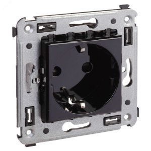 Розетка ATLASDESIGN с заземлением со шторками 16А механизм карбон
