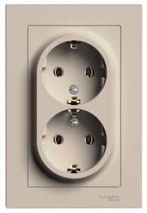 ATLASDESIGN РОЗЕТКА двойная с заземлением, 16А, в сборе, ПЕСОЧНЫЙ