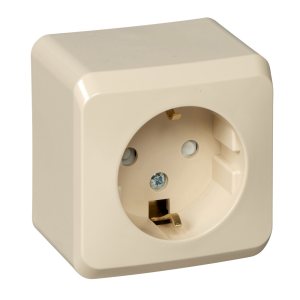 ЭТЮД Розетка наружная с заземлением без шторок бежевая