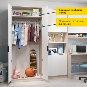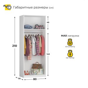 Шкаф Твикс, платяной, с полками, створки: 2, 2100*520*800