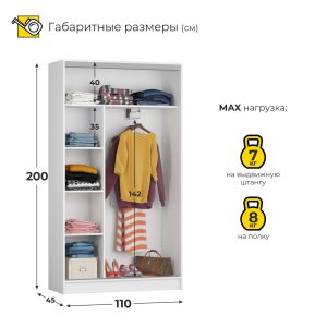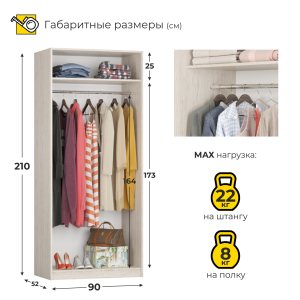 Шкаф Твикс, платяной, створки: 2, 2100*520*900