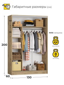 Шкаф-купе Оскар дуб вотан без зеркал 200*50*130 см.