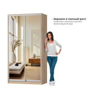 Шкаф-купе Оскар дуб вотан с зеркалом 200*50*130 см.