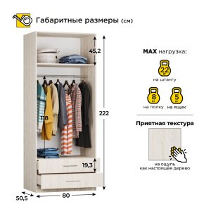 Шкаф Ника платяной с 2-я ящиками