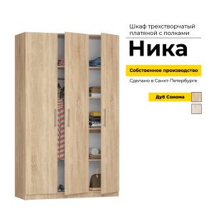Шкаф Ника платяной с полками, створки: 3