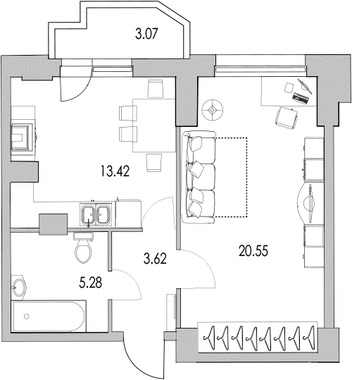 1-комнатная