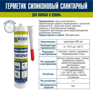 Герметик силиконовый санитарный Roof Complect белый (260мл)